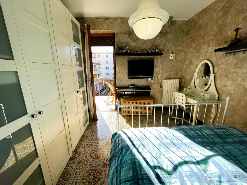 L’appartamento è composto da ingresso con ripostiglio e armadio per la biancheria, zona giorno con cucina e area pranzo, camera matrimoniale, cameretta, bagno finestrato e un ampio balcone angolare, vivibile.